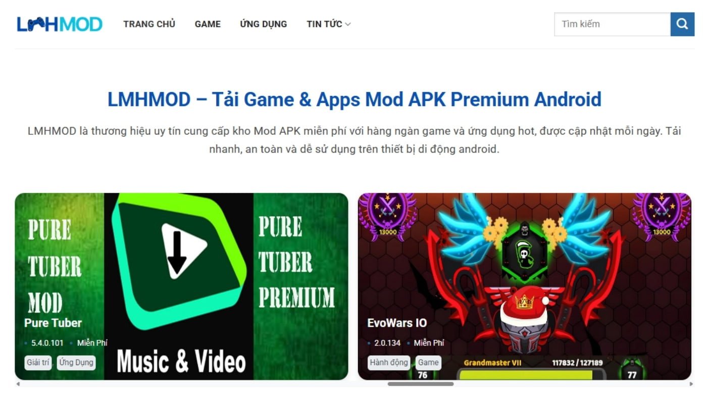 LMHMOD là thương hiệu uy tín cung cấp kho Mod APK miễn phí với hàng ngàn game và ứng dụng hot, được cập nhật mỗi ngày. Tải nhanh, an toàn và dễ sử dụng trên thiết bị di động android.